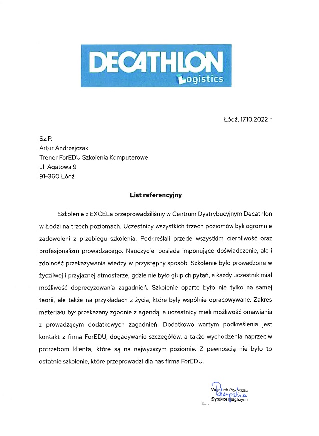 Zespół ForEDU Wraz z moimi współpracownikami mam przyjemność prowadzić szkolenia dla klientów „ForEDU szkolenia komputerowe”. Pracę jako dydaktyk rozpocząłem będąc nauczycielem akademickim na katedrze programowania. Obecnie wraz z zespołem współpracowników zajmuje się optymalizacją pracy przy pomocy MS Excel oraz projektowaniem analiz i rozwiązań kalkulacyjnych. Mam doświadczenie zrealizowanych ponad 10 000 h szkoleniowych. Realizujemy zarówno szkolenia od podstaw dla osób indywidualnych, jak i szkolenia uwzględniające wiele czynników dla koncernów o globalnym zasięgu. Owocuje to ogromnym doświadczeniem w branży szkoleniowej. Jesteśmy ogólnopolską firmą szkoleniową specjalizującą się w szkoleniach z MS Excel oraz wykorzystaniem innych aplikacji na potrzeby analiz. Nasza misja to prowadzenie profesjonalnych szkoleń na najwyższym poziomie. Osiągamy ten cel dzięki: doświadczonym specjalistom, jakimi są nasi trenerzy, wysokiej jakości materiałom szkoleniowym oraz zamiłowaniu do tego, co robimy. Liczba realizowanych szkoleń pozwala nam być konkurencyjnymi cenowo zaś jakość usług zapewnia satysfakcję naszych kontrahentów. |